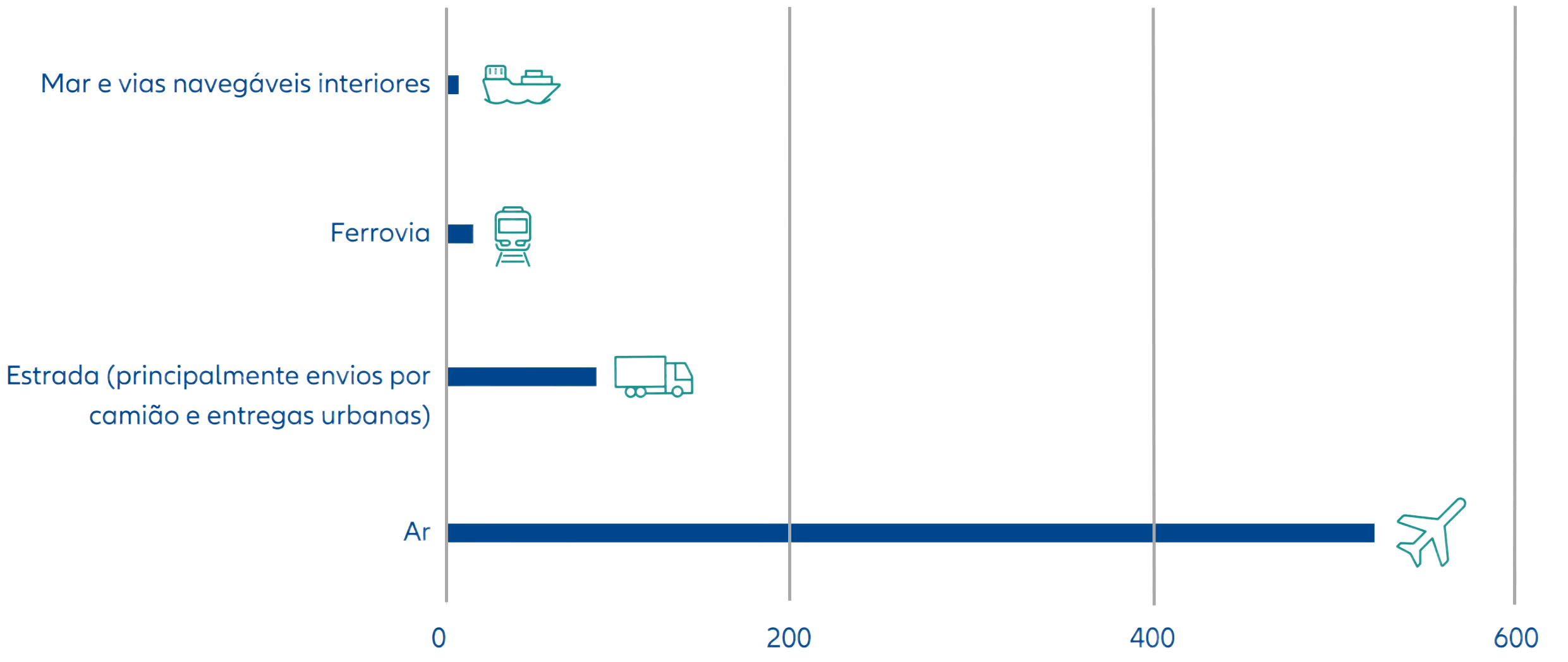 Gráfico 1: Intensidade das emissões globais de carbono no transporte de mercadorias (kg) por mil milhões de toneladas por quilómetro, em 2020