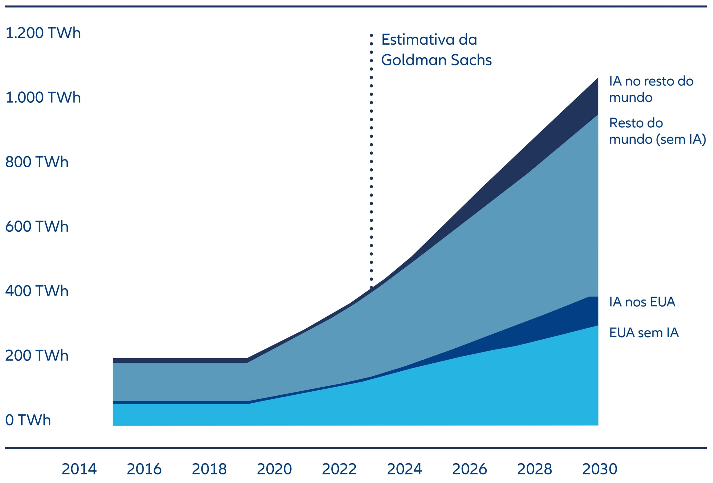 Fonte: Masanet et al. (2020), Cisco, IEA, Goldman Sachs Research