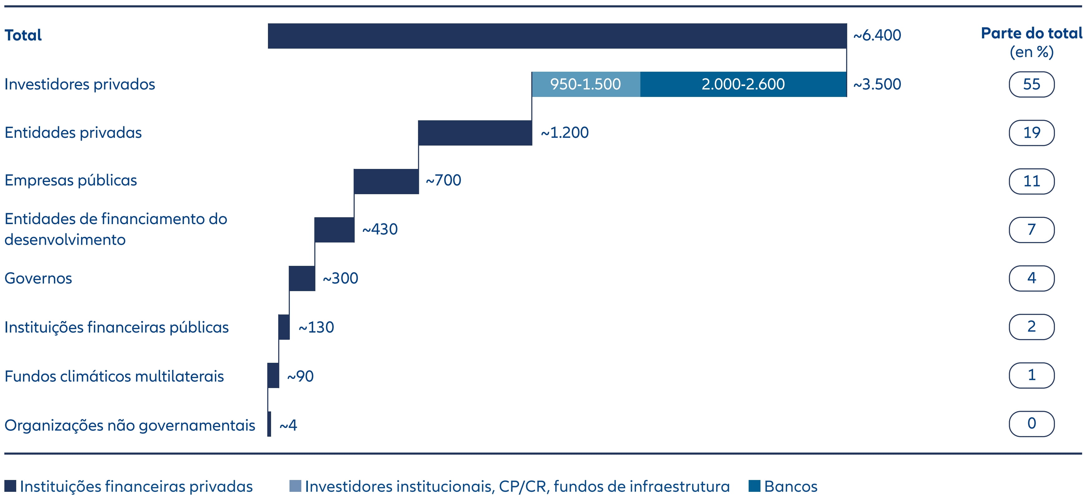 Gráfico 2: As instituições financeiras privadas podem financiar cerca de 55% das necessidades de investimento para a meta de emissões zero (2022-2050)